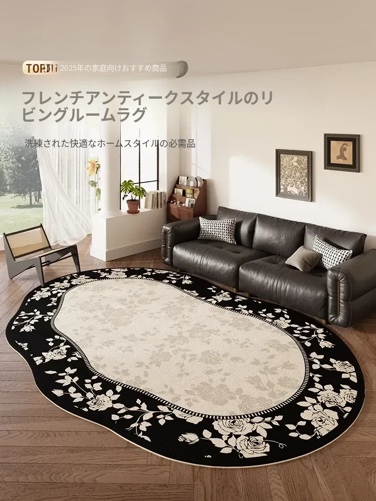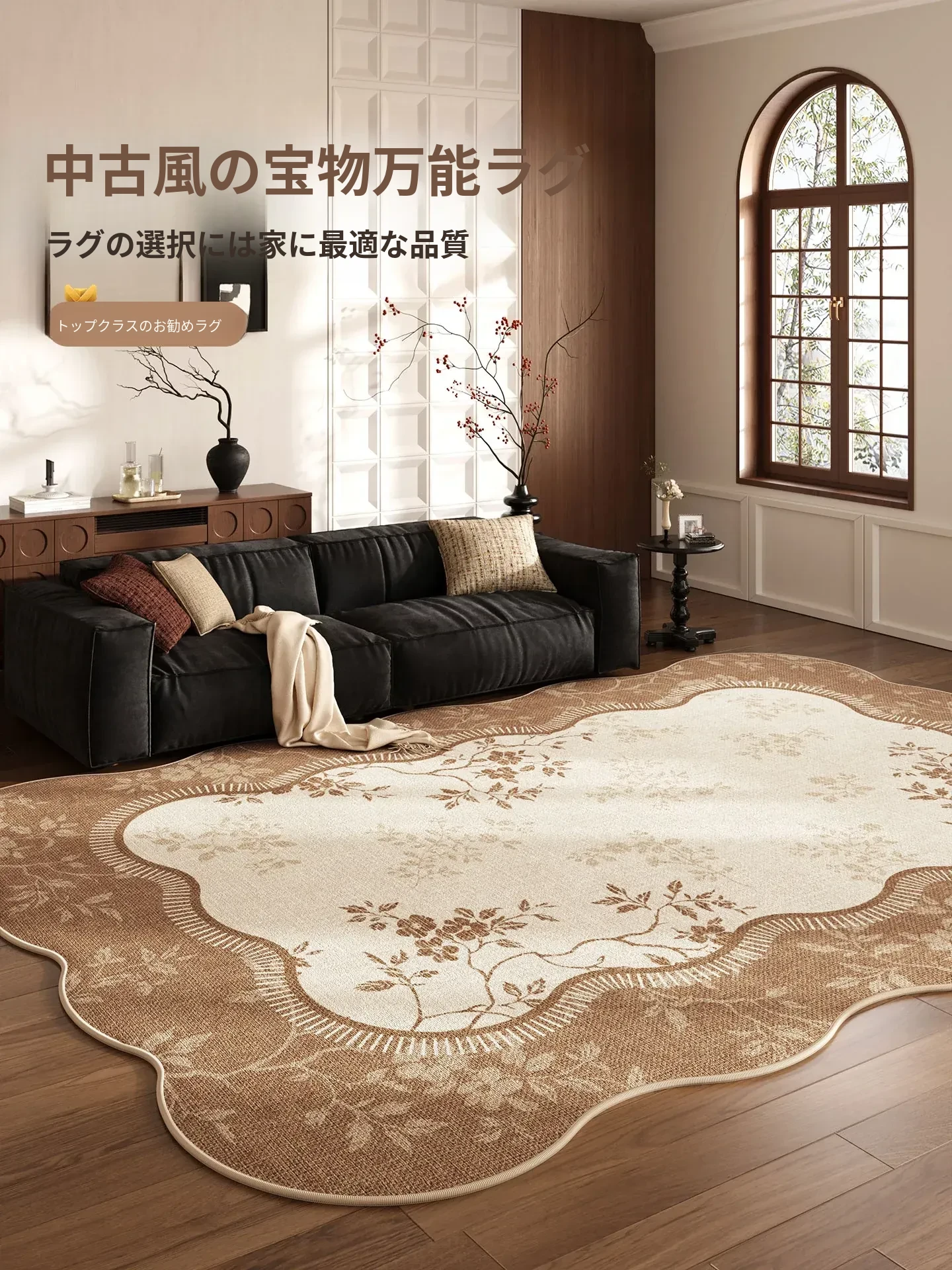 フランス風レトロデザインの異形リビングカーペット - 高級感溢れる防水・防汚マット、ソファやテーブルにぴったりの新作!寝室にも最適!