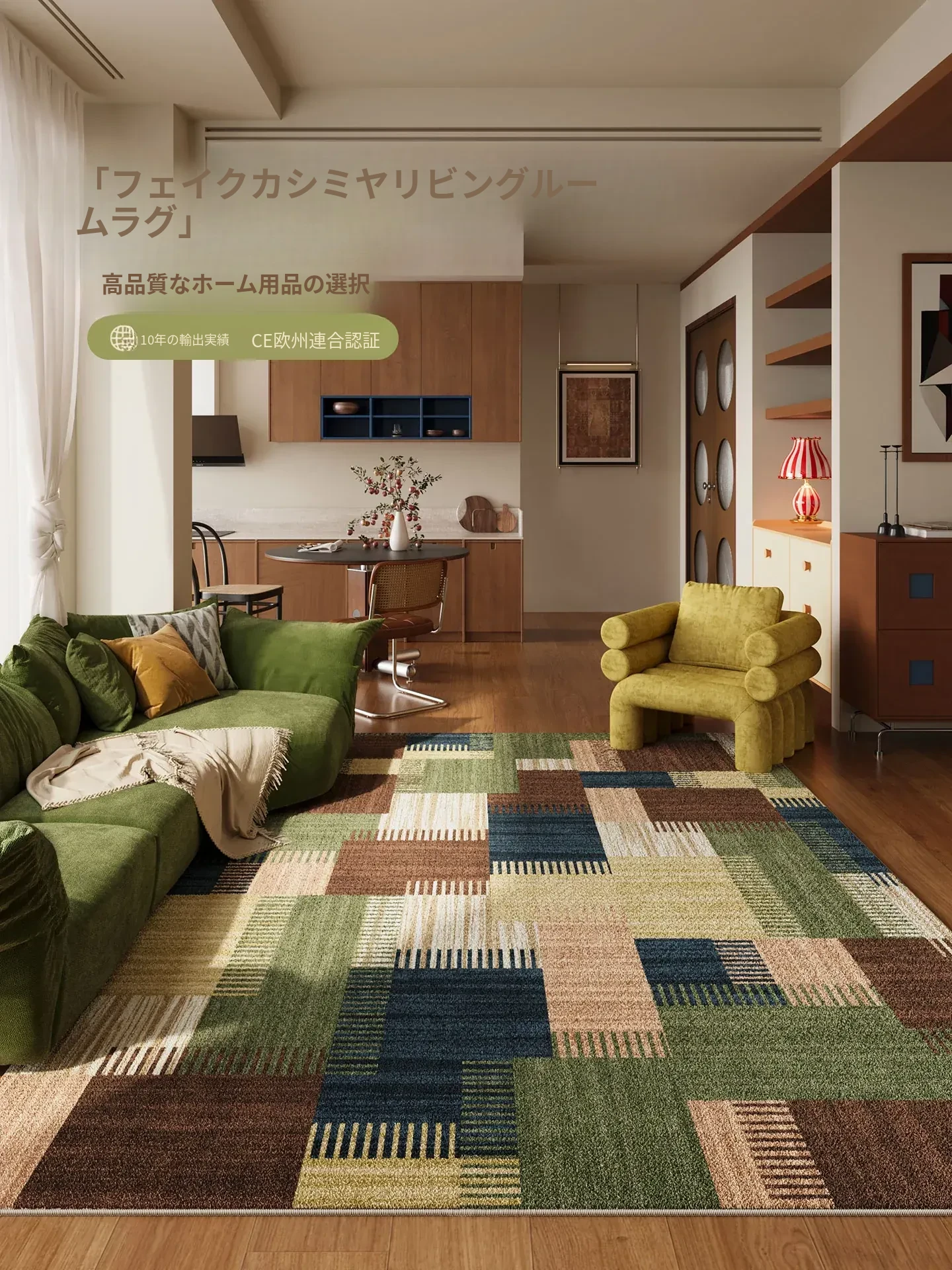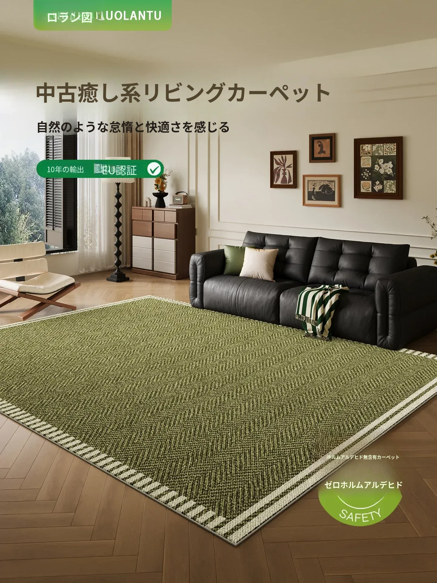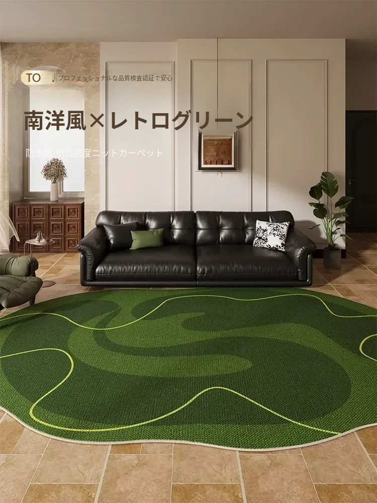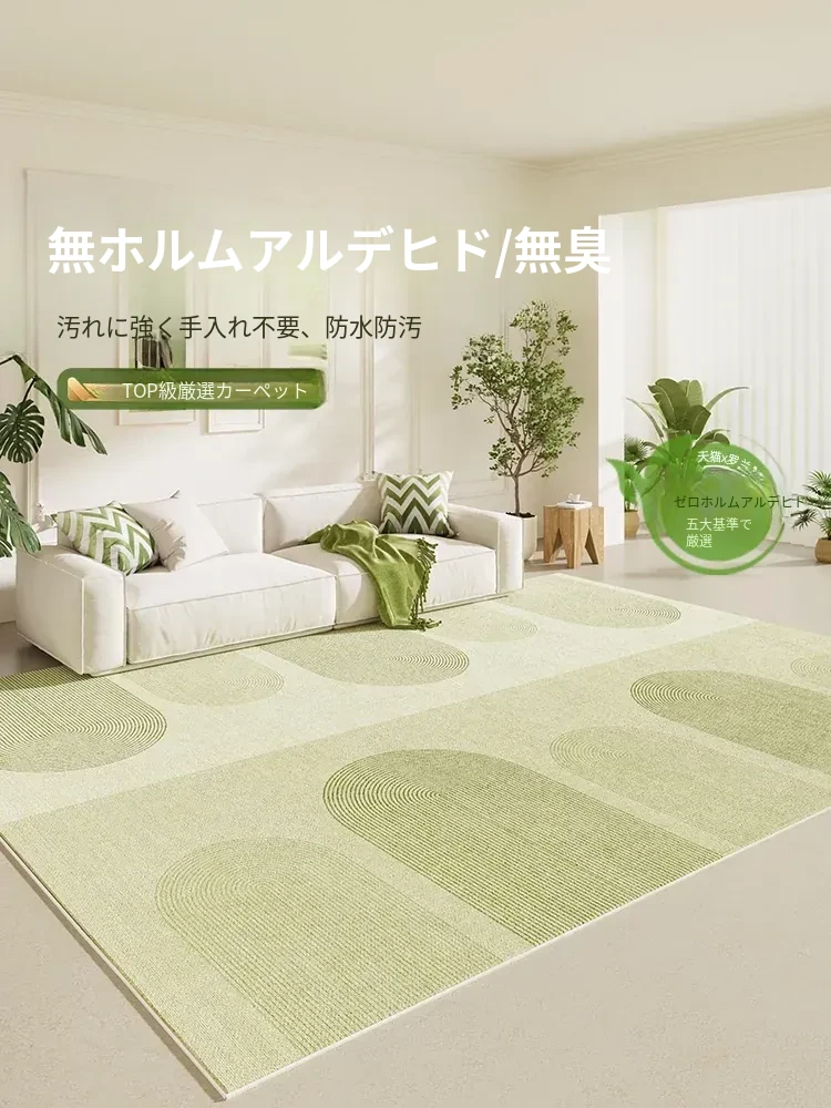 2025年新作!高級感あふれる緑のカーペット - リビングルーム用、手間いらずの防水デザイン!お手入れ簡単、茶卓やソファのスタイルを引き立てるインテリアアイテム。