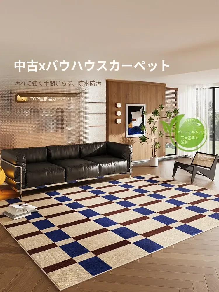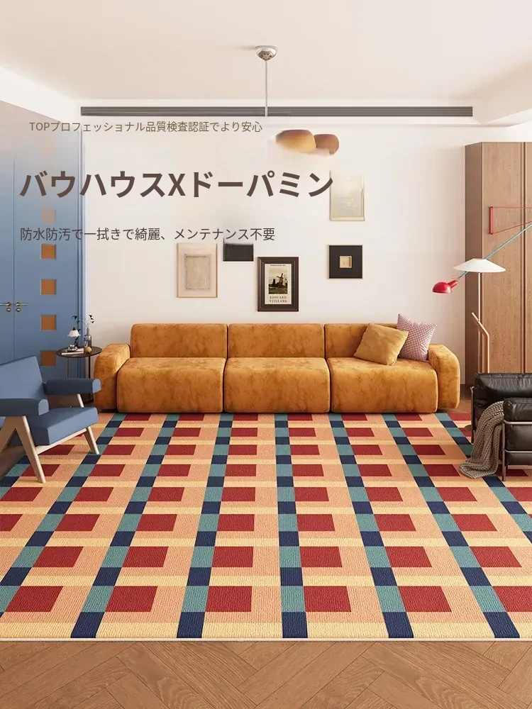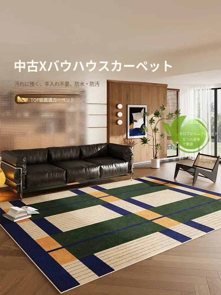 おしゃれなバウハウス風カーペット|リビングにぴったり!水洗い不要、簡単お手入れの高級ヴィンテージデザイン|防水機能付きで、ソファやテーブルの下に最適なミニマルスタイルのマット!