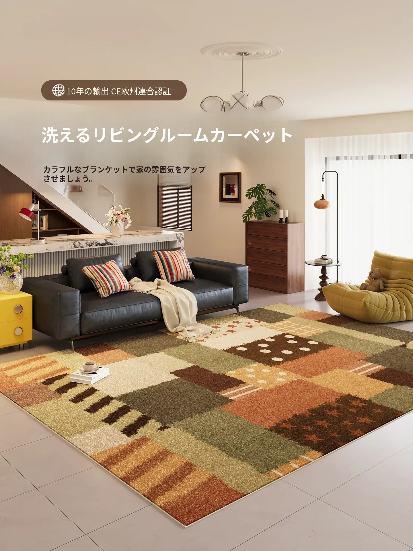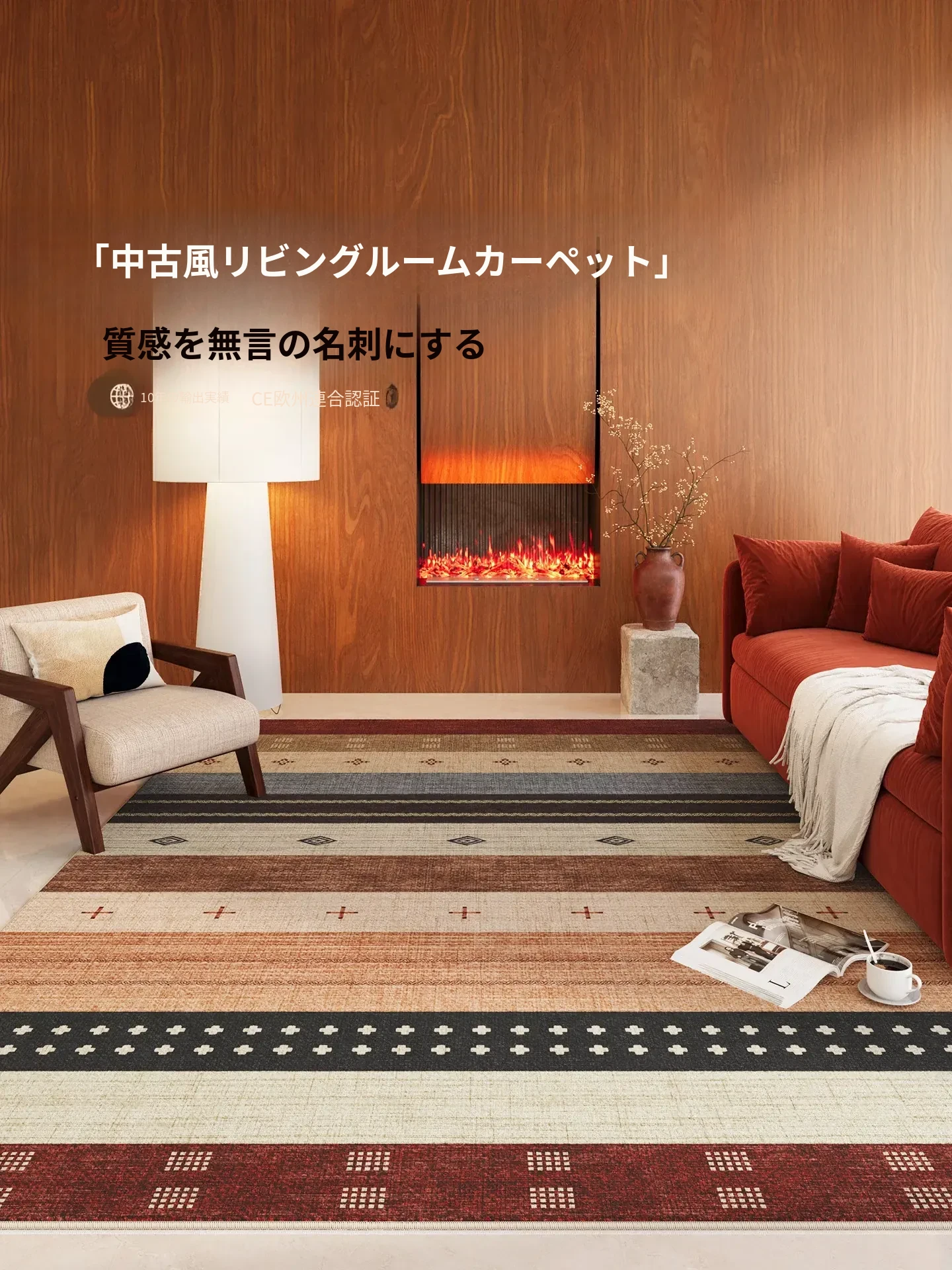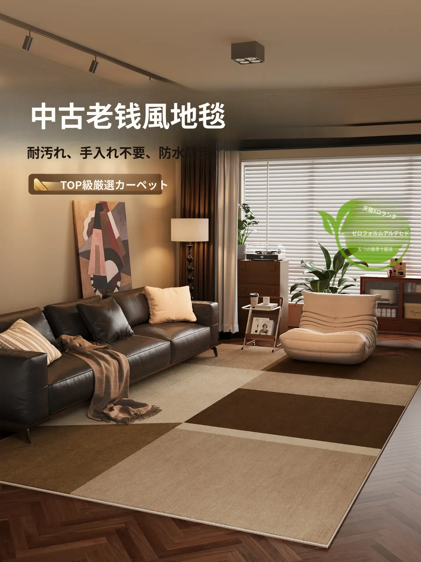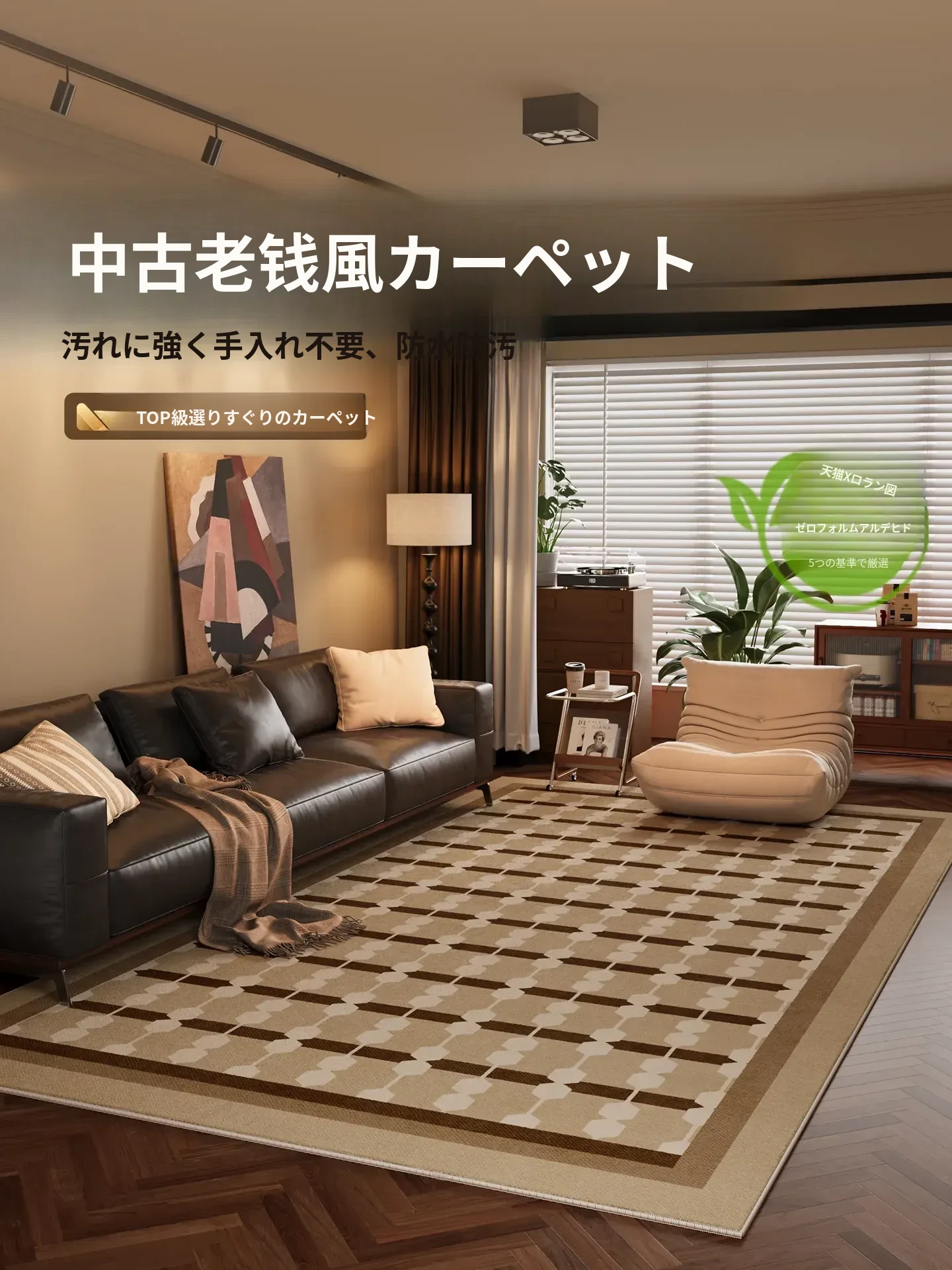 2025年新作!おしゃれな中古風カーペット - リビングや寝室に最適!洗浄不要で大面積をカバー、ソファの下にもぴったり。防水・防汚仕様で、お手入れ簡単!快適な空間を演出しましょう!