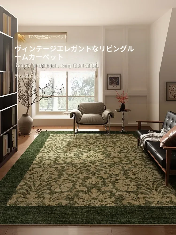 レトロ風ヴィンテージグリーンリビングルームカーペットマット ソファーテーブル用 お手入れ不要&水洗い可 防水&軽量 高級感溢れるデザイン!あなたの空間を華やかに演出します。