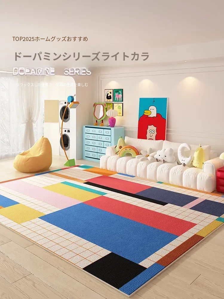新作!多巴胺アートラグ - 高級感あふれるリビング用カーペット、ソファ・テーブルにぴったり。カラフルで防水・防汚、滑り止め付き。寝室にも最適なデザインで、毎日の生活を彩ります!