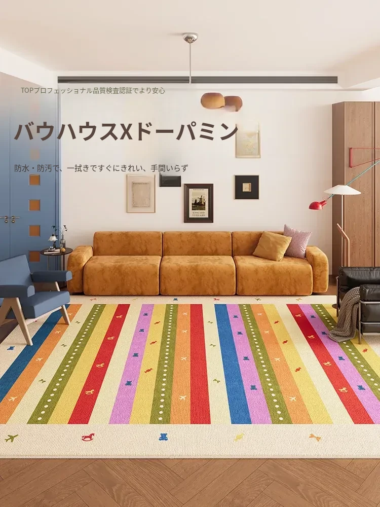 バウハウス風リビングルームラグ|レトロなドーパミンソファやコーヒーテーブルにぴったり!防水・防汚でお手入れいらずのカラフルなマット。快適な空間作りをサポートします!
