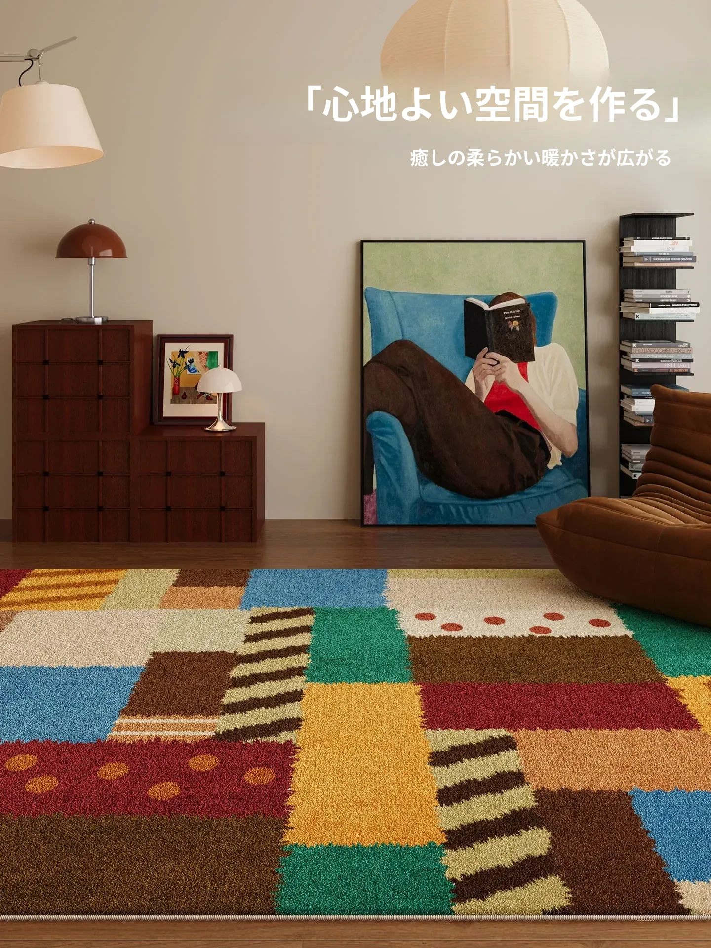 カラフルなドーパミンラグ2026年新作!リビングにぴったりなパッチワークデザインのソファ&コーヒーテーブルマット。寝室のベッドサイドにも最適で、お手入れ不要の便利さ!
