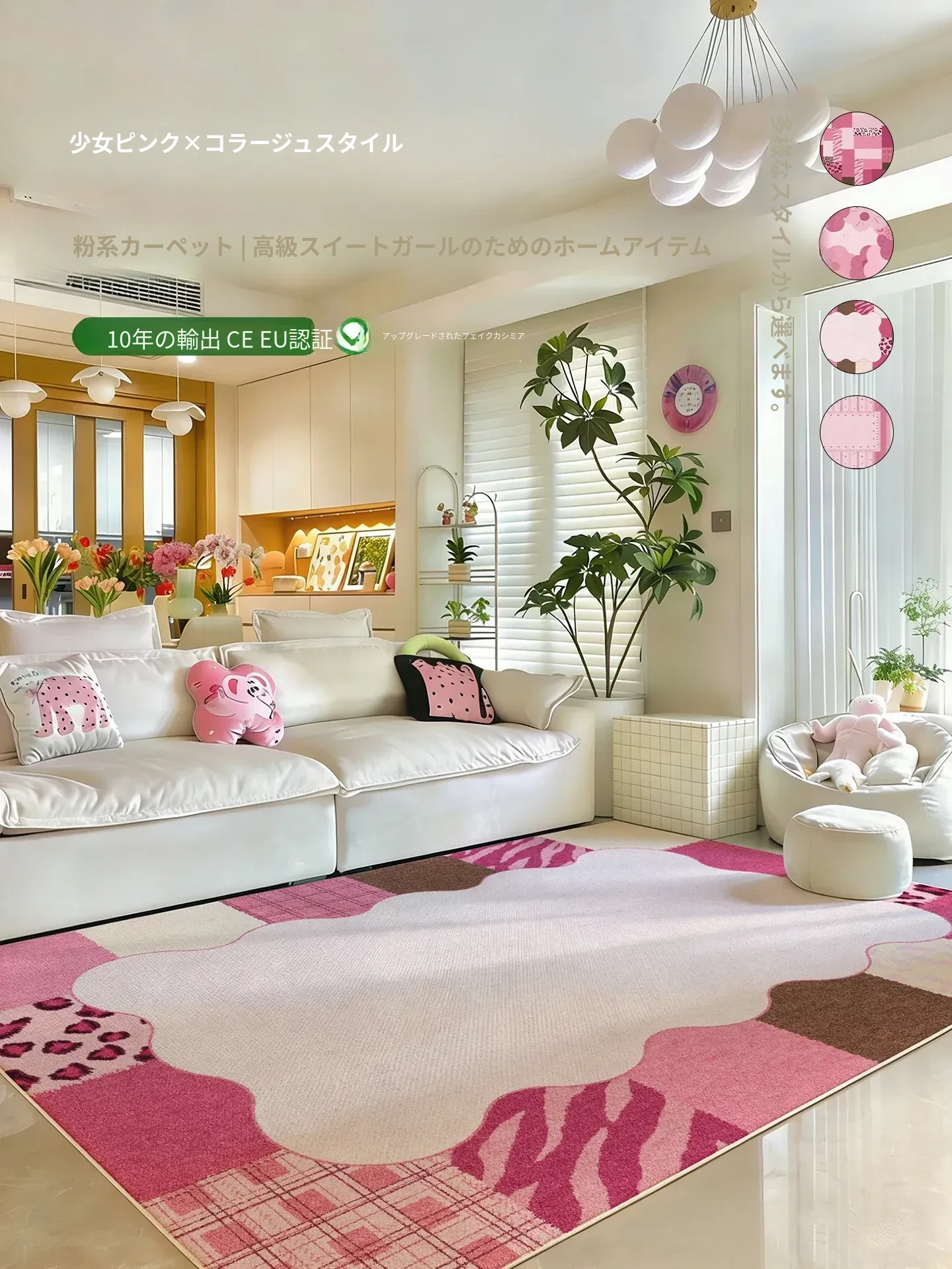 2026年新作!ピンクのドーパミンラグ - リビングや寝室にぴったり!クリーム風デザインでおしゃれ、撥水加工でお手入れ簡単!ソファやテーブルの下、ベッドサイドに最適なマット。お部屋を華やかに演出します!