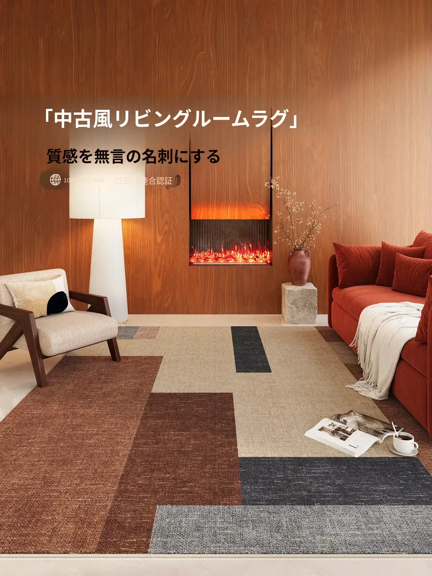 高級感溢れるリビング用カーペット!和風ソファやコーヒーテーブルにぴったり。お手入れ簡単で、寝室の防音にも最適な便利なマット。快適な空間を演出する一品です!