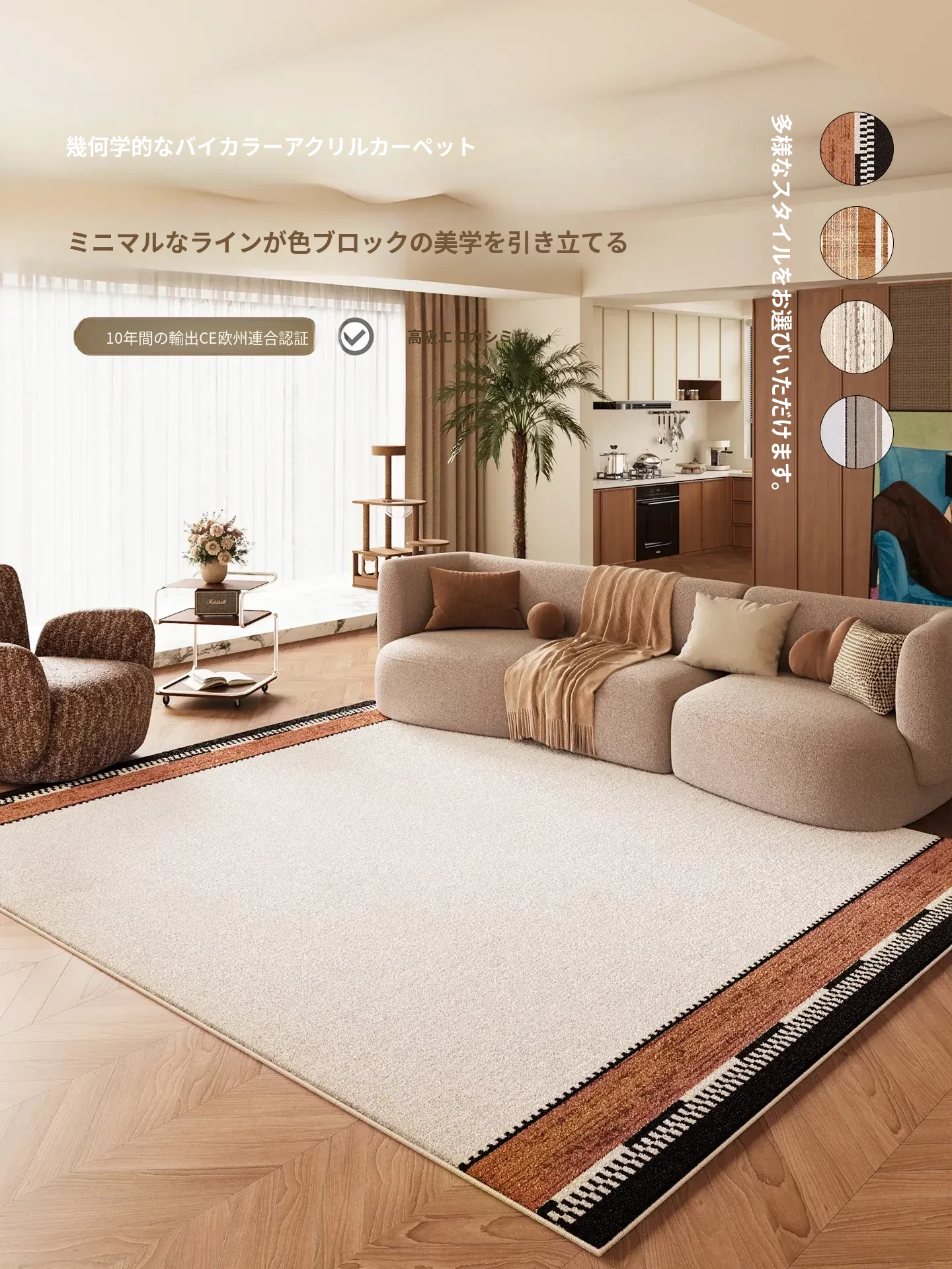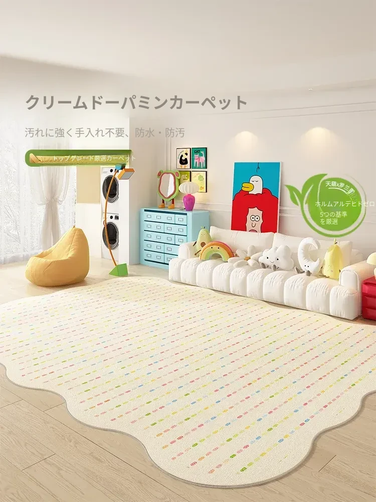 ダイニングやリビングに最適!多バインドカーペット、メンテナンス不要の防水マット。ソファやテーブルの下でおしゃれに彩り、寝室のベッドサイドにもぴったり。クリーム風デザインで、簡単に拭き取れるからいつでも清潔!