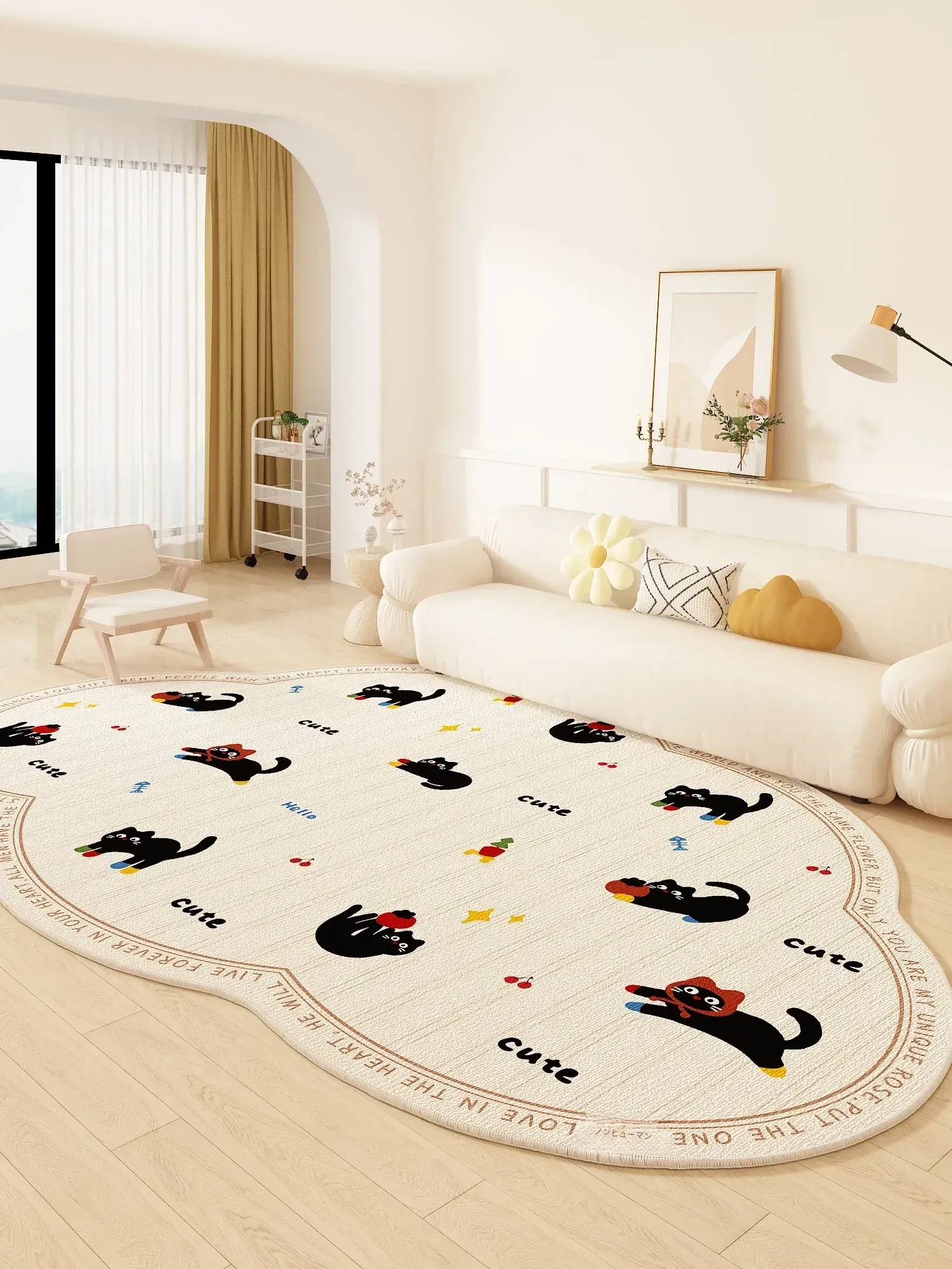 カートゥーン風韓国スタイルのリビング用ラグ!ユニークな形状で、寝室やソファ、テーブルの下にもぴったり。防水・防汚仕様でお手入れも簡単!家族みんなが快適に過ごせる、心地よい空間を演出します。