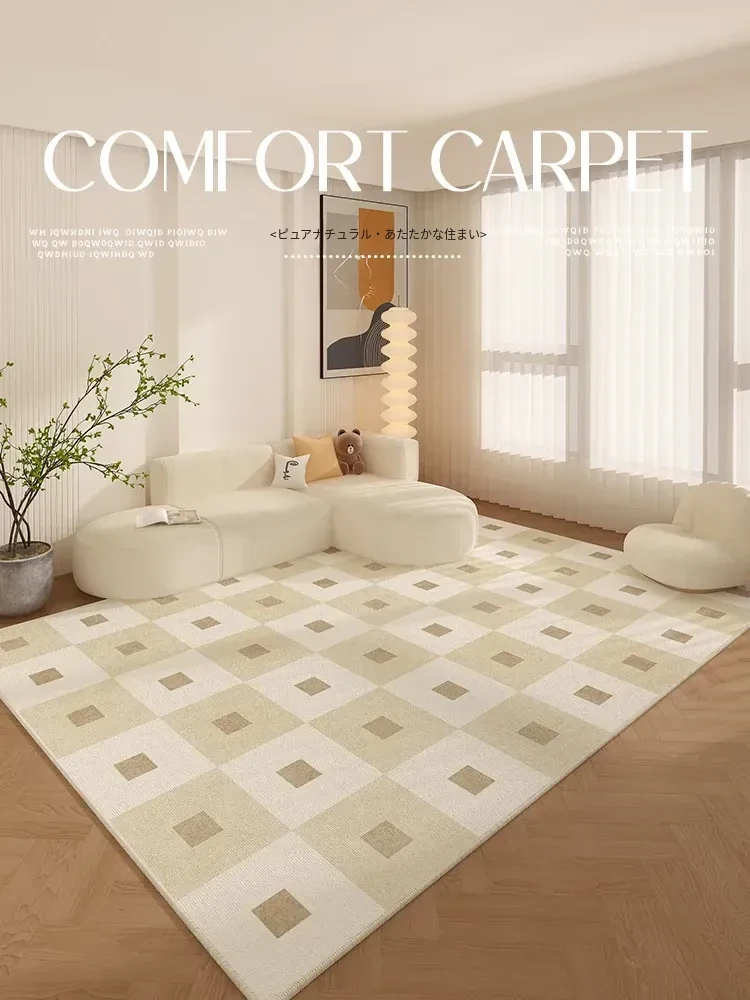 防水・お手入れ不要のクリーム風リビングカーペット|ダーモンソファ・コーヒーテーブルにも最適な拭き取り可能なベッドサイドマット!快適さとスタイルを両立させた、あなたの部屋を華やかに彩る一品!