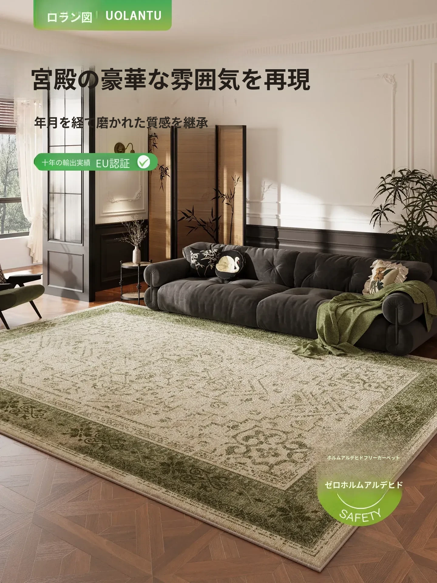 ペルシャグリーンカーペット リビングルーム用 お手入れ不要 ソファにぴったり 中古風 防水・防汚 2025年新作 テーブルマット ヴィンテージスタイル