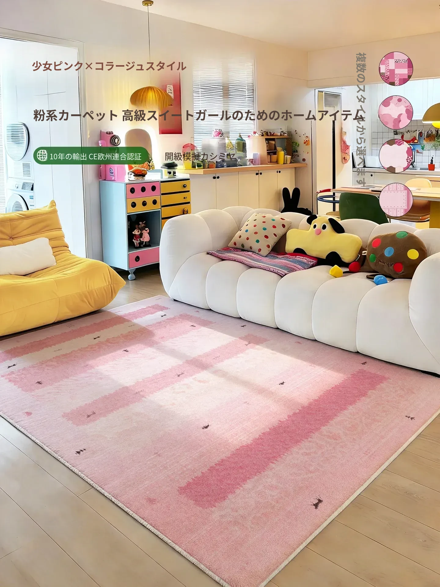 ピンクのドーパミンラグ - ソファやテーブルの下にぴったりな防水&拭き取り可能なクリーム風のベッドサイドマット。お部屋を華やかに彩り、快適さをプラス!