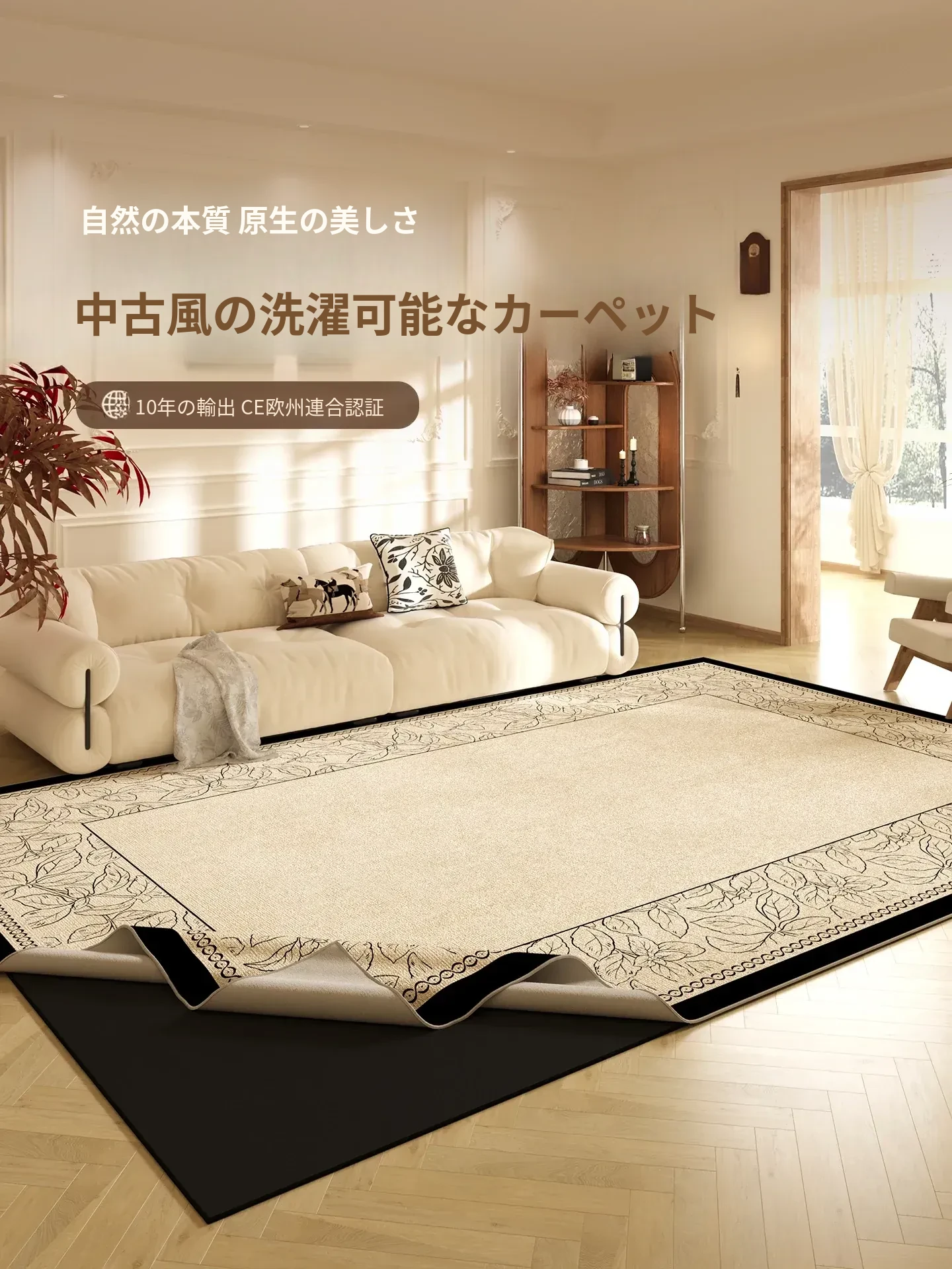 洗える二重構造のカーペット、リビングに最適!フレンチスタイルの新作2025年版、ヴィンテージ感漂うデザインで、寝室やソファ周りに高級感をプラス。清潔感を保ちながら、おしゃれな空間を演出します!