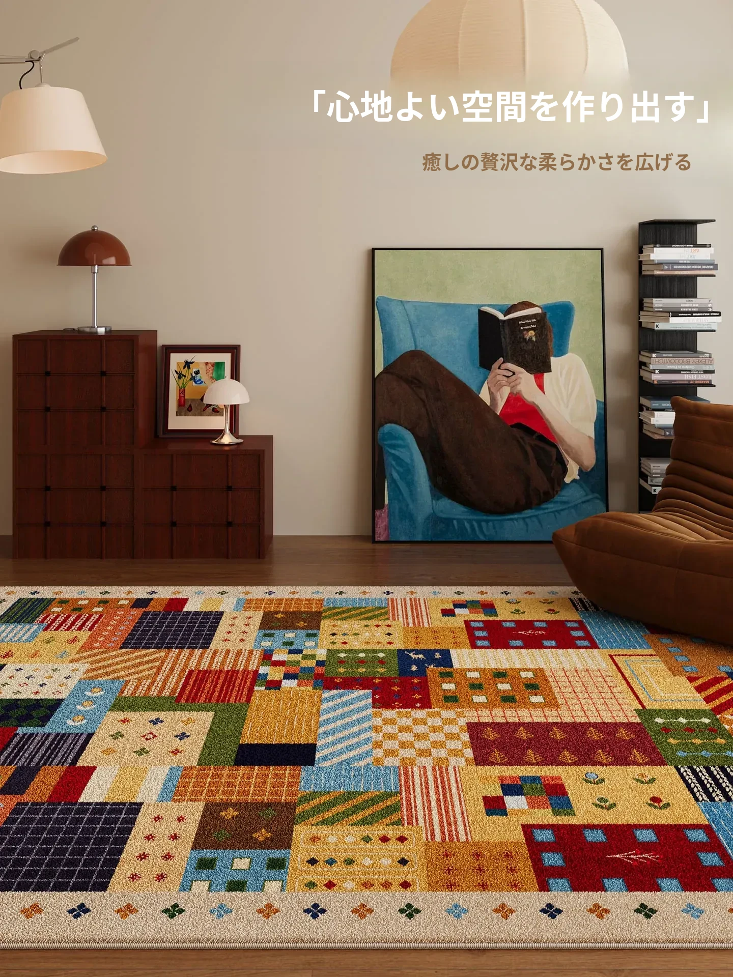 ドーパミンカーペット|リビング・寝室に最適!レトロデザインで防水・汚れに強く、お手入れ簡単。バウハウススタイルのティーテーブルマットやソファー用カーペットとしてもおすすめです。